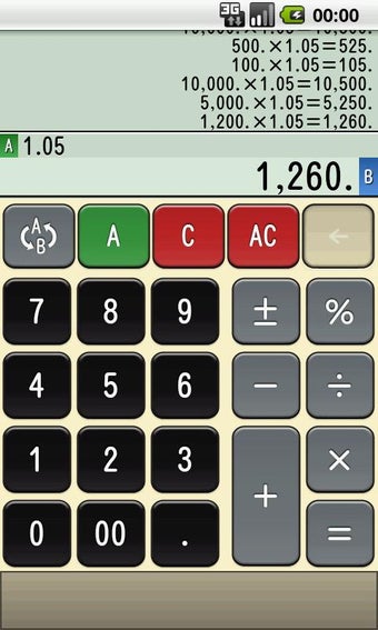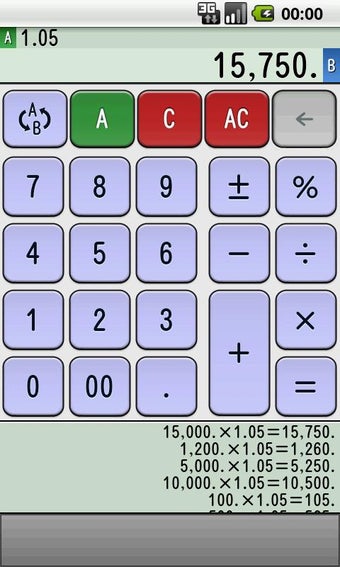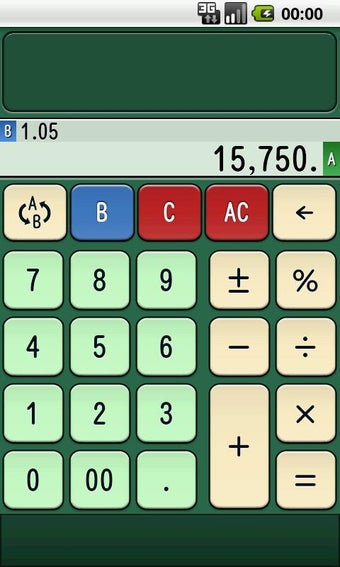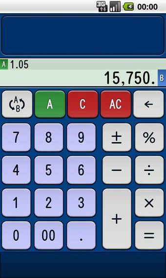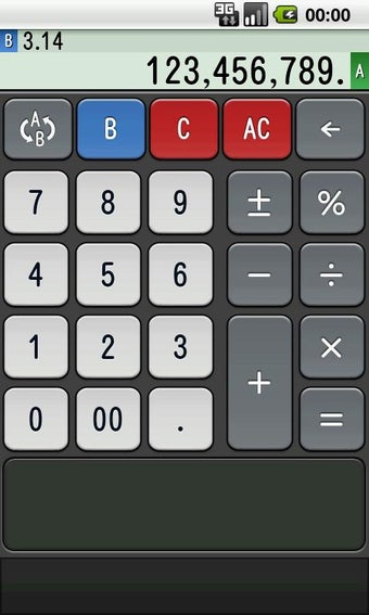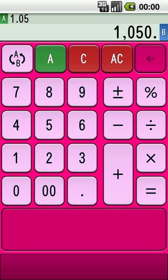 アプリを起動すると、四則演算のみのシンプルな電卓が表示されます。通常通り計算を行ったら、「A/B」と書かれた切り替えキーを押してみましょう。すると計算結果が小さく左上に移動し、もう一つ新たな計算ができるようになります。例えば110gで320円のジャムと250gで680円のジャムの単価を比べたい時など、メモの手間がなく非常に便利です。