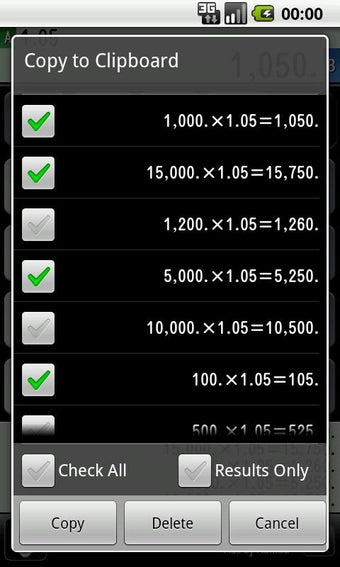本体のオプションから「計算履歴」をオンにすれば、余白スペースに計算履歴を表示できるので、複雑なプロセスの計算をしている場合でも途中で思考が混乱する心配がありません。さらに履歴部分を長押ししてメニューを呼び出し、計算履歴をクリップボードにコピーすることもできます。